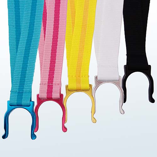 カラビナを付けたショートストラップはカバンの金具やベルトに下げて使用できます。 また、首から掛けるネックストラップのタイプは夏の行楽地などで人気です。